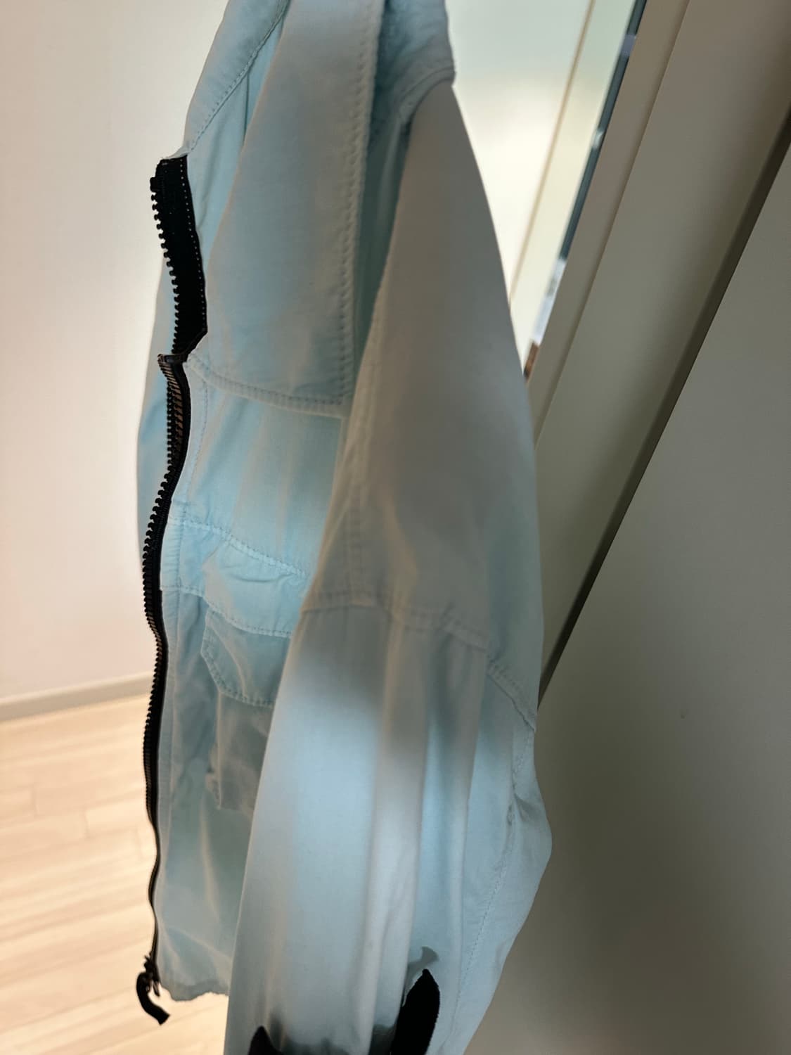 20FW 스톤아일랜드 자켓 입니다. 요즘 날씨에 딱 입기 좋은 두께감 입니다. 색은 에이징 되서 연한 하늘색 느낌에 빈티지스러운 느낌 입니다.