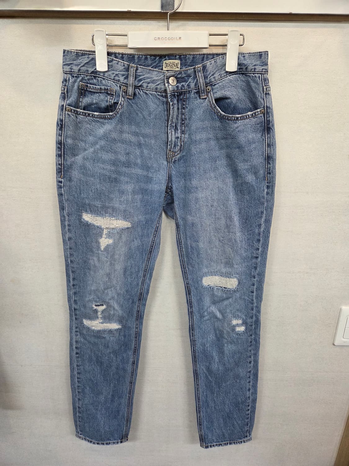 자연스런 사용감외 상태괜찮습니다. 기장 101 허리 40 허벅지 27 밑단 16 대략입니다 데미지 부분은 커스텀 또는 수선해서 막은걸로 보여집니다 더 궁금한 점이 있다면 문의주세요