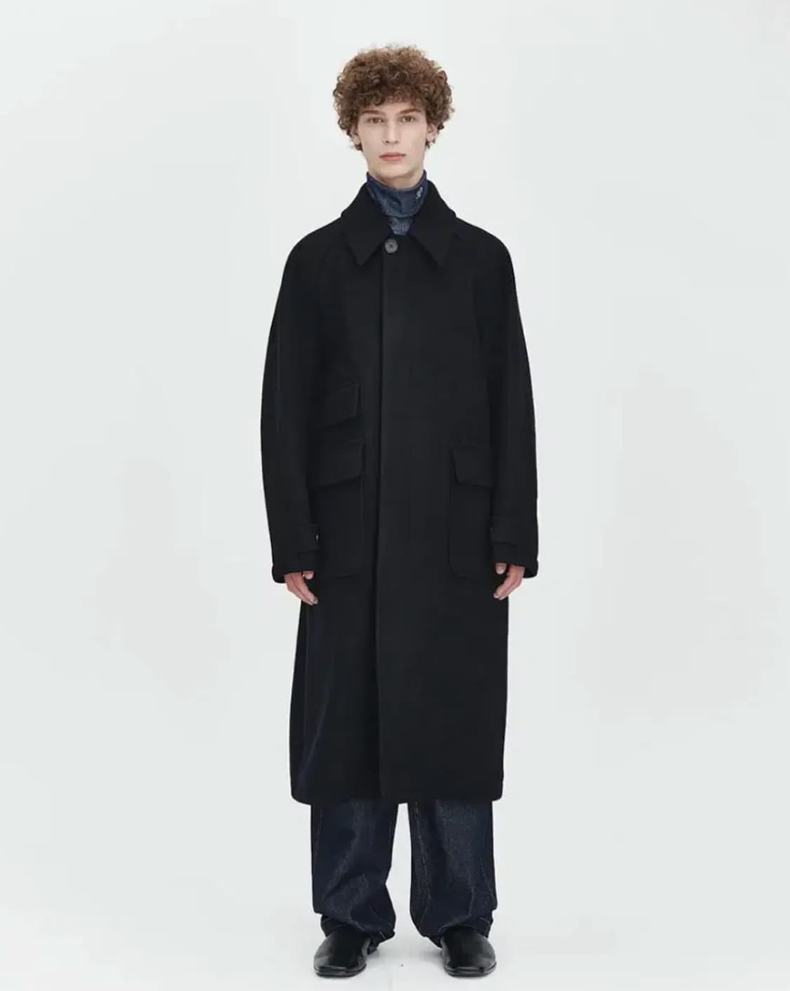 (M, 100) 벨리에 맥시 멜톤 울 발마칸 코트 네이비