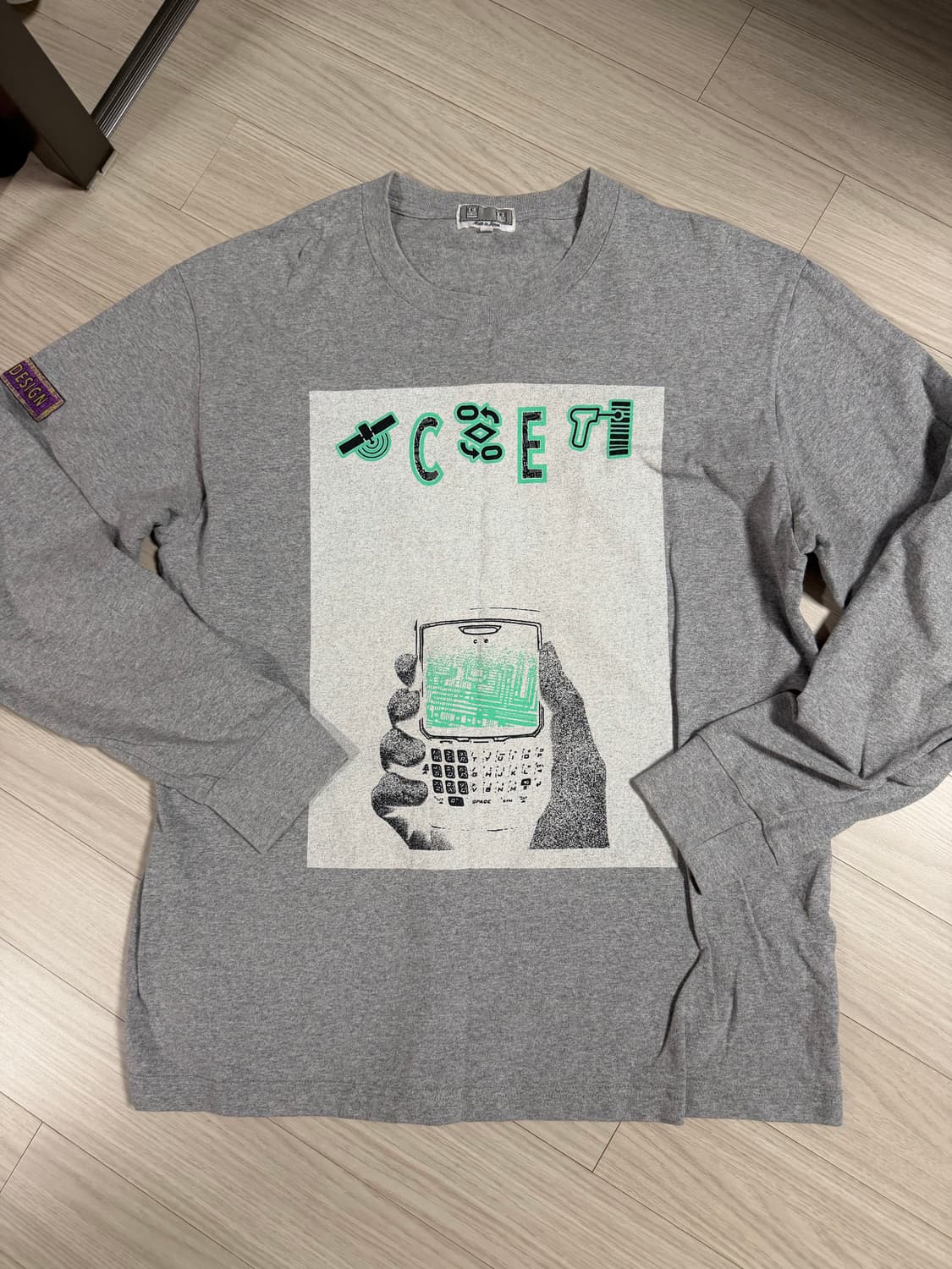 사이즈 L의 카브엠트 그레이 롱티입니다. 전면에 독특한 프린팅이 매력적인 제품입니다. 소매 부분에 디자인탭이 포인트로 들어가 있습니다. 상태 9/10 입니다. 사이즈는 네 세로 73 가로 55나오네요. 별도 문의 없으시면 바로 안전결제 부탁드려요!