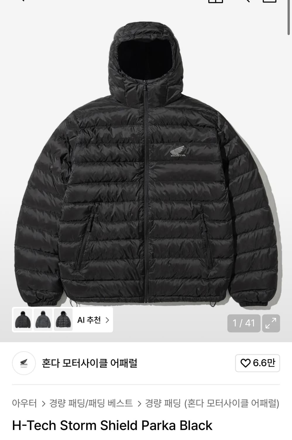 혼다 모터사이클 경량패딩 s