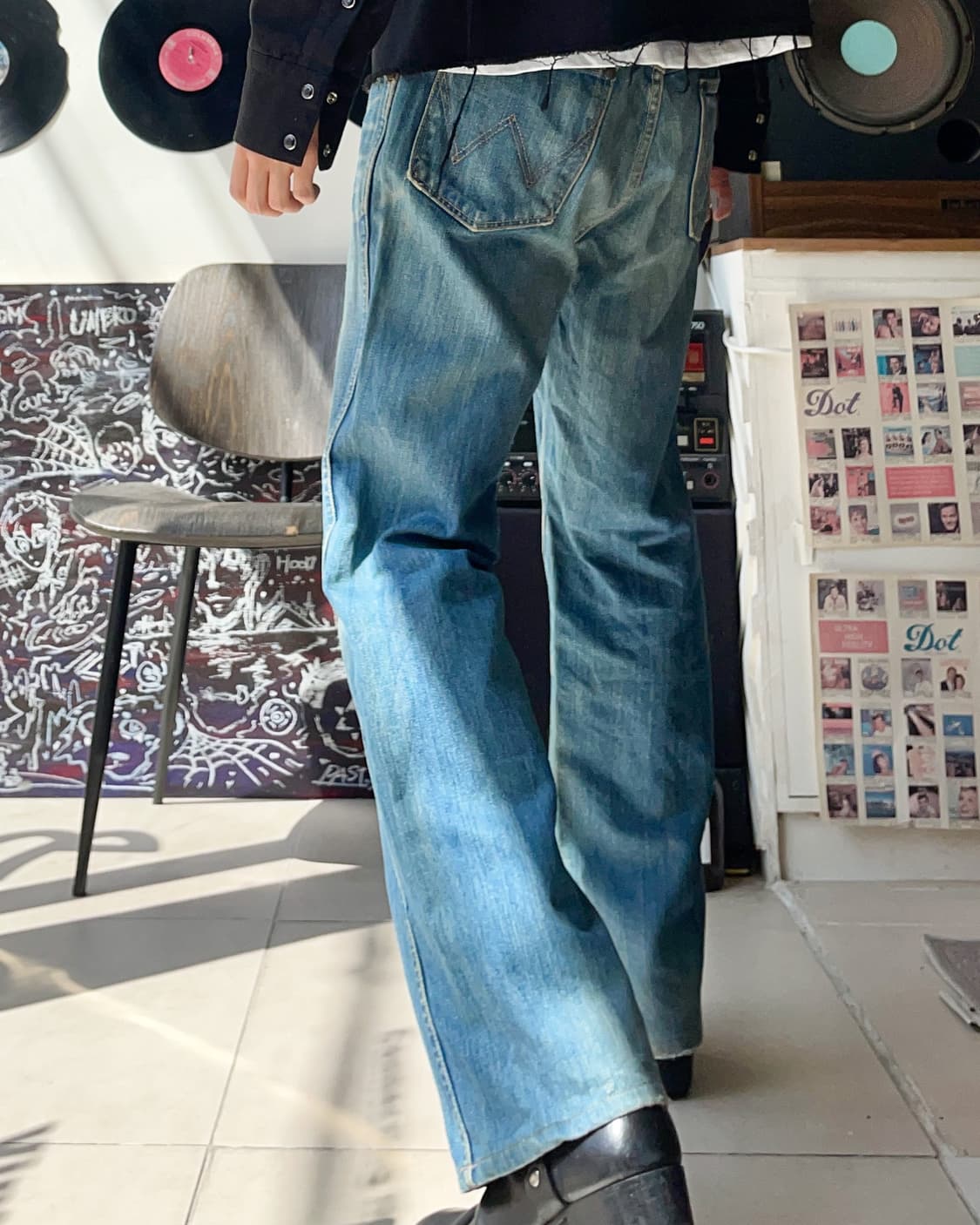 빈티지 랭글러 데님 팬츠 세미 부츠컷 핏 소소한 사용감의 컨디션 실측 허리 39 / 밑위 27 / 허벅지 29 / 밑단 23 / 총장 100 실측 대비 맨즈 30 사이즈