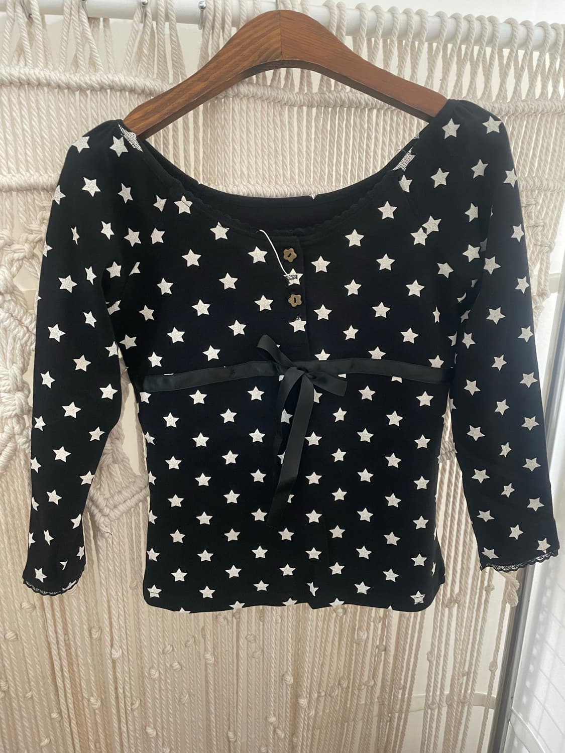 별 프린트 스퀘어넥 크롭 티셔츠