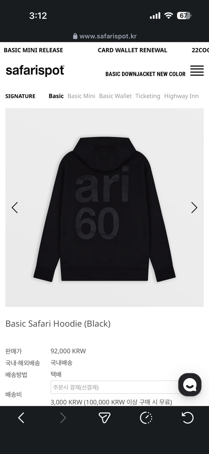 사파리스팟 우먼 1/2 베이직 사파리 후드 블랙