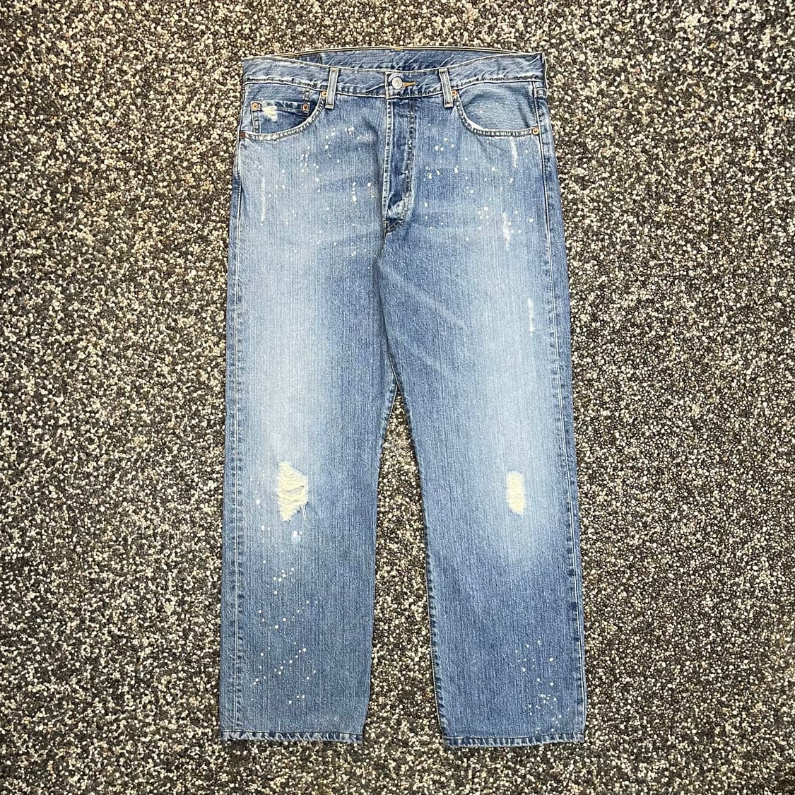 00s 리바이스 501 페인팅 데님 (36) - 세탁 및 케어 완료. - 05년도 컬럼비아 생산 개체로 페인팅, 데미지 디테일이 돋보이는 제품입니다. 허리단면 46 / 기장 104 / 허벅지단면 33 / 밑단 23 / 밑위 32 Price : 89,000 Condition : 8.5/10 - 배송은 보통 1~2일 내에 도착 💙