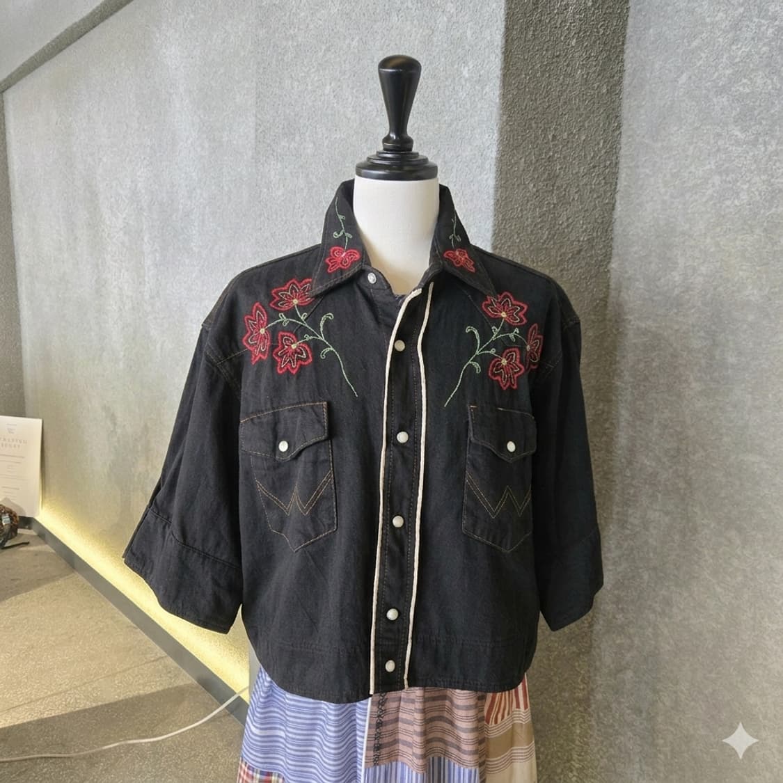 ✔️ 브랜드 : 77circa ✔️ 상품명 : 플라워자수 블랙데님 반팔셔츠 ✔️ 사이즈 : F ✔️ 가격 : 170,000 ✔️ 상태 : A 🏷 본 상품은 Vintage Rework 상품입니다. Vintage 제품 특성상 약간의 얼룩, 손상 있을 수 있습니다.