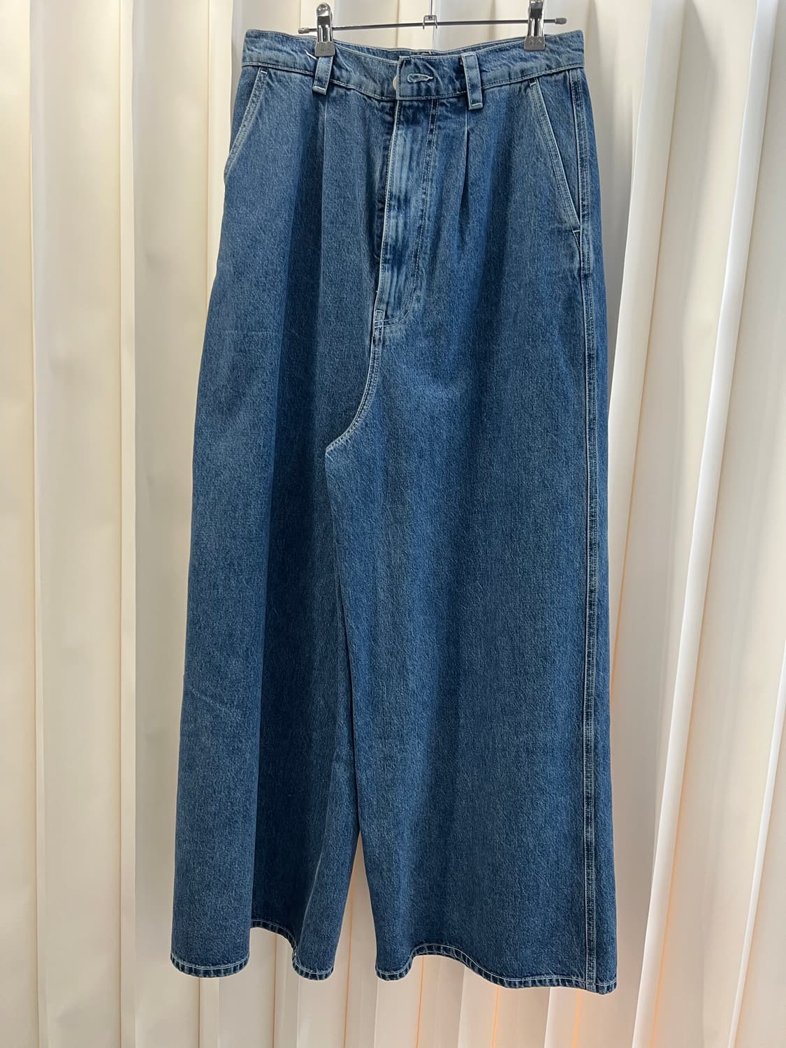 SUNNEI 브랜드의 매력적인 데님 팬츠를 소개해요 와이드 핏으로 편안하게 착용 가능하며, 어떤 상의와도 잘 어울려요 사진에서 보이는 것처럼 깔끔한 디자인이 돋보이는 제품이에요 데일리룩으로 활용하기 좋은 청바지랍니다 he