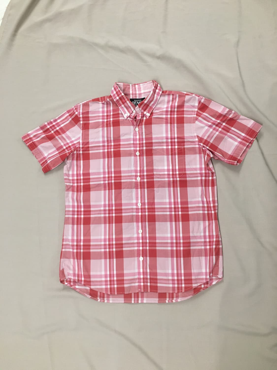 일본 최고의 편집샵 빔스의 셔츠에요! 핑크 베이스에 마드라스 스타일 체크가 이뻐요! 급처가로 보내요! 어깨: 44 가슴: 53 팔길이: 23 총길이: 71/74