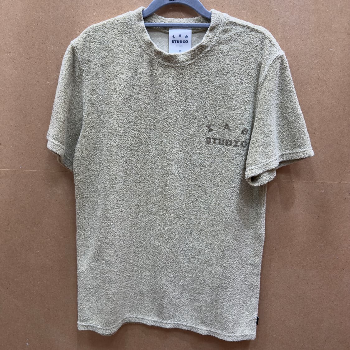 아이앱 스튜디오 타월 티셔츠 베이지 일반 면 티셔츠와는 차별화된 포근한 타월소재로 되어 있습니다. 전반적으로 깨끗한 컨디션 유지 중이며 타월 소재 특성상 자연스러운 사용감 외에 큰 오염 없고 뒷면 시그니처 로고 프린팅 갈라짐 없이 깔끔합니다. ✔️사이즈 : M ✔️ 어깨 : 42 ✔️ 가슴 : 47 ✔️ 팔 : 22 ✔️ 총장 : 72 - 실측사이즈는 cm 기준이며 실측은 재는 사람에 따라서 1~3cm 사이즈 오차가 있을 수 있습니다. - 꼼꼼하게 하자 체크 후 미리 알려 드리지만 간혹 작은 이염이 있을 수 있으니 그점 양해 부탁드립니다. - 구제 특성상 교환/환불 불가하오니 신중히 구매 부탁 드립니다.