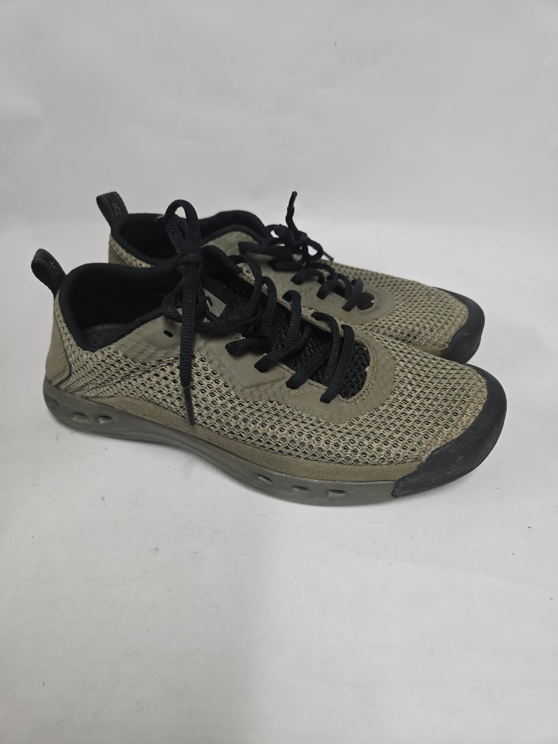 다이와 아쿠아슈즈 모스그린 색상 260 사이즈입니다. 메쉬 소재로 통기성이 좋고 물놀이에도 적합해요. 가벼워서 활동하기 편하실 거예요. 여름철 시원하게 신기 좋은 신발이랍니다. 통풍 잘 되는 재질이라 갯바위나 선상에서 신기 좋습니다.