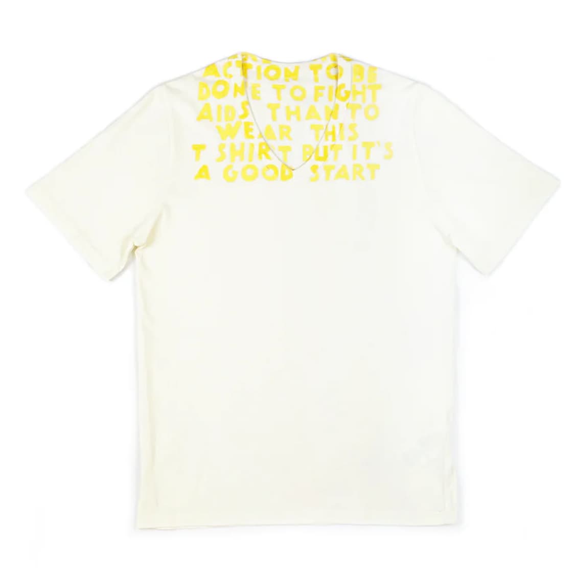 MAISON MARGIELA aids charity t-shirt 메종 마르지엘르 에이즈 티셔츠 stock no. 0280 condition : 9/10 size : S - 94F/W에서 처음 등장한 Maison Margiela의 에이즈 티셔츠는 단순 시즌 상품이 아닌 지속적인 캠페인 플랫폼에 가까운 피스입니다. 당시 HIV/AIDS는 사회적으로 강한 낙인과 공포가 있었고, 이에 대응하여 마르지엘라는 프랑스의 비정부기구인 AIDES와 협업하여 판매 수익을 기부하는 착한 소비 패턴을 촉구하는 티셔츠를 제작했습니다. 하이패션의 지속적 기부 프로젝트 시스템화의 첫 단추를 낀 기념비적인 디자인입니다. "THERE IS MKRE ACTION TO NBE DONE TO FIGHT AIDS THAN TO WEAR THIS T-SHIRT BUT IT'S A GOOD START" - + 세컨핸즈 제품 특성상 교환/반품이 불가합니다. + 청구로 81, 1층 tekito에서 시착 가능합니다. + 오프라인 샵에 더 많은 제품 보유 중입니다.