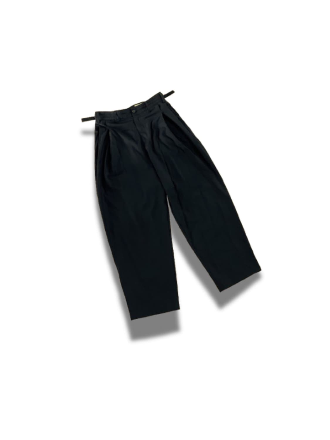 Art if acts 블렌드 팬츠 차분한 블랙 컬러에 여유 있게 떨어지는 와이드 실루엣이 매력적인 팬츠입니다. 앞쪽 투턱 디테일로 핏이 자연스럽고, 옆 조절 스트랩 디테일이 있어 셔츠나 니트, 자켓과 매치했을 때 분위기 있게 떨어집니다. 후면 포켓 디테일도 좌우가 달라 은근히 포인트가 있고, 원단은 울 65 / 폴리 35 혼방이라 너무 무겁지 않으면서도 깔끔한 느낌입니다. 실측 * 허리 39 * 밑위 37 * 총장 104 * 허벅지 35.5 * 밑단 23.5 표기 사이즈는 M입니다. 와이드하면서도 테이퍼드 느낌이 살짝 있어 실루엣 정말 예쁩니다. 미니멀, 클래식, 컨템포러리 무드 좋아하시는 분께 추천드립니다. 편하게 문의 주세요. #아트이프액츠 #ArtIfActs #와이드팬츠