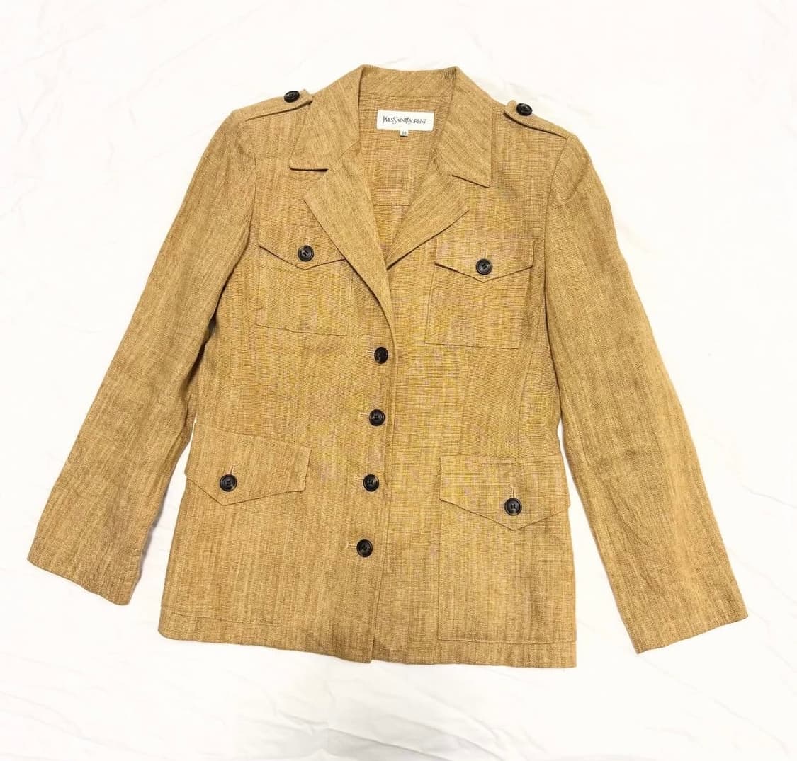 Yves Saint Laurent 90s Linen Millitary Jacket *Made in Japan *우먼즈 제품이지만 요즘 트렌드 반영하여 마른 남성도 착용 가능할 것으로 보입니다. size: 38 (41/50.5/60/68) condition: A