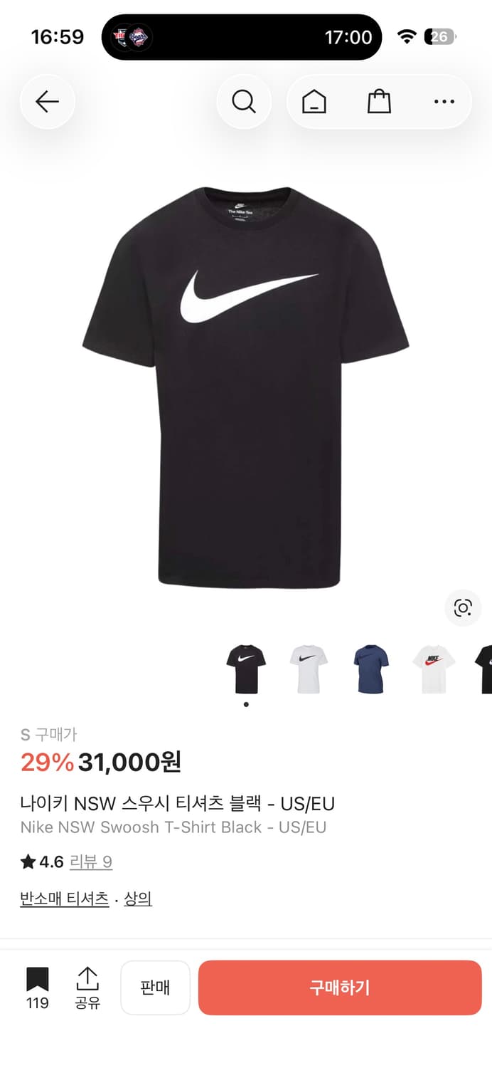 나이키 센터 스우시 반팔 티셔츠 U1614