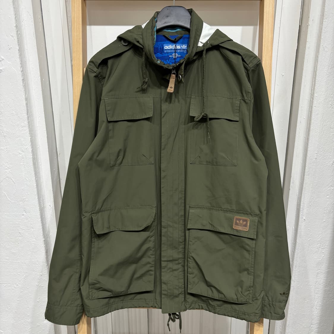 M / 어깨 46 / 가슴 55 / 총장 75 보통 사용감이 있다면 모자 안쪽에 갈라짐이 있는데, 아주 깨끗한 상태입니다! 전체적으로도 아주 상태 좋습니다 야상 같은 디자인의 바람막이 입니다 :)