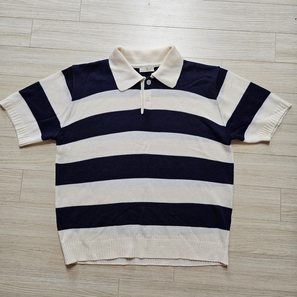 아이보리+네이비 니트반팔 총장 약64.5센티 발견하지 못한 얼룩 하자 있을 수 있음