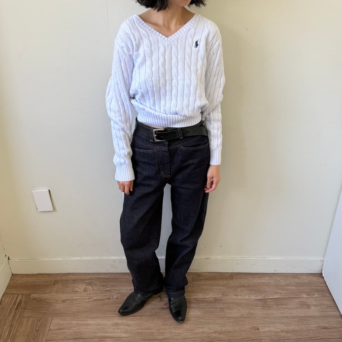 폴로 랄프로렌 블루 코튼 케이블 니트