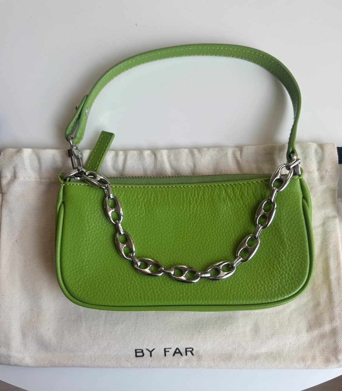 바이파 미니 레이첼 가방 그린 컬러입니다. 자연스러운 사용감, 전체적으로 깨끗한 상태입니다 :) 밑판에 작은 점 같은 오염? 참고해주세요. 간단한 소지품 넣어 다니기에 좋아요. 더스트백 같이 보내드려요! 교환, 환불은 어렵습니다!