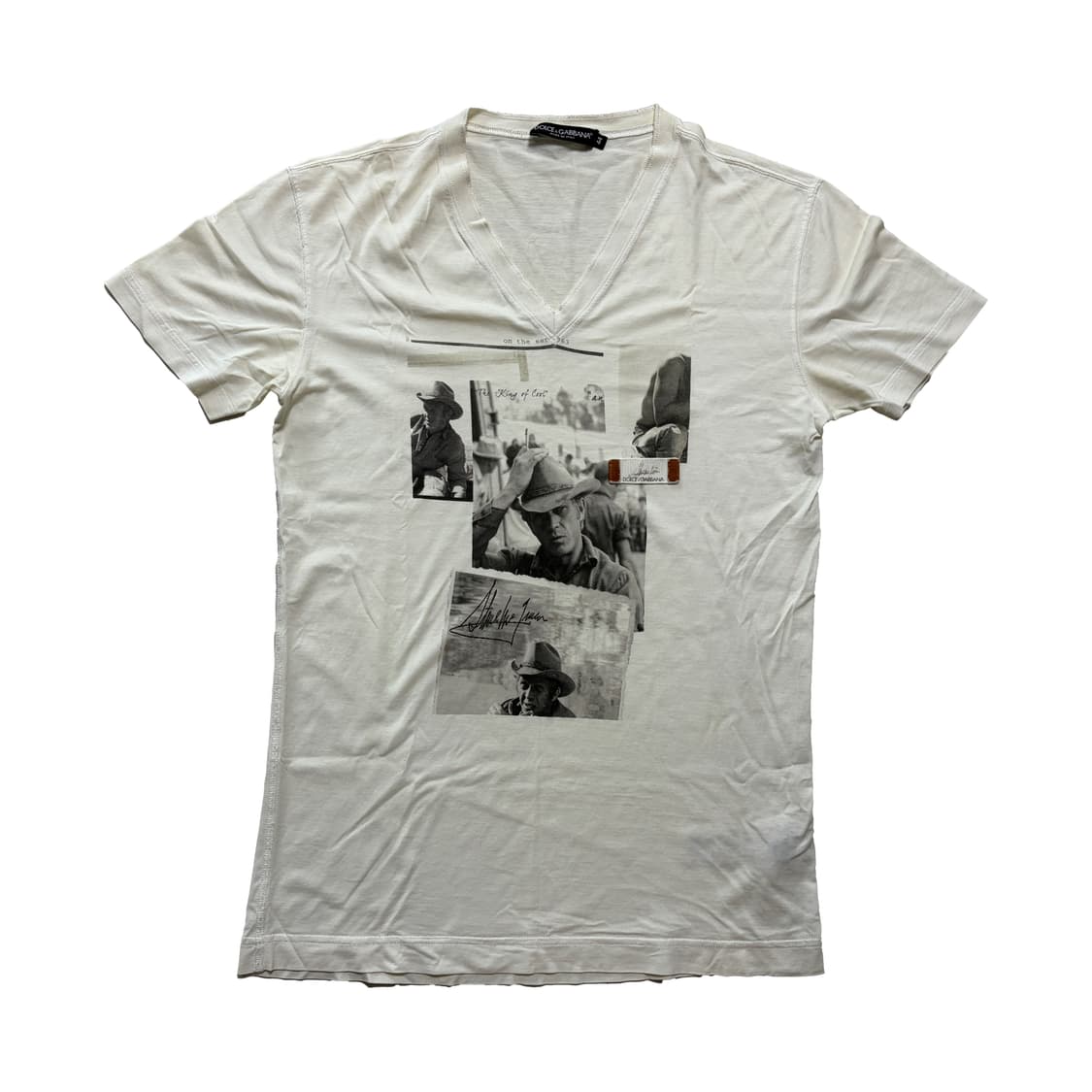-“the king of cool” steve mcqueen -1963년 작 The Magnificent Seven (황야의 7인) 프린팅 -돌체앤가바나 가죽 탭 -자연스러운 에이징 -브이넥 자연광 사진 특성상 색감차이 발생 할 수 있습니다. 빈티지 특성상 확인못한 오염,하자 존재할 수 있습니다. 빈티지 특성상 단순 변심 교환 환불 불가능합니다.