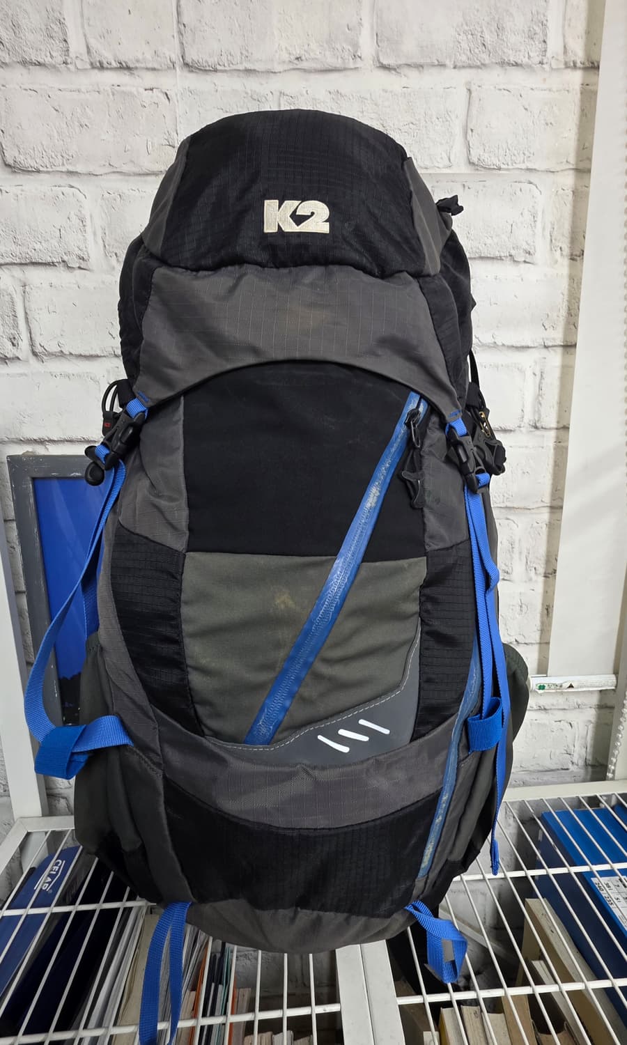 K2 등산배낭 등산가방 공기순환 등판. 허리벨트 레인커버. 내구성소재 용량 40리터 높이62 가로28 폭22 사용감있음 (방수지퍼 닳은현상 있음...사진참조)