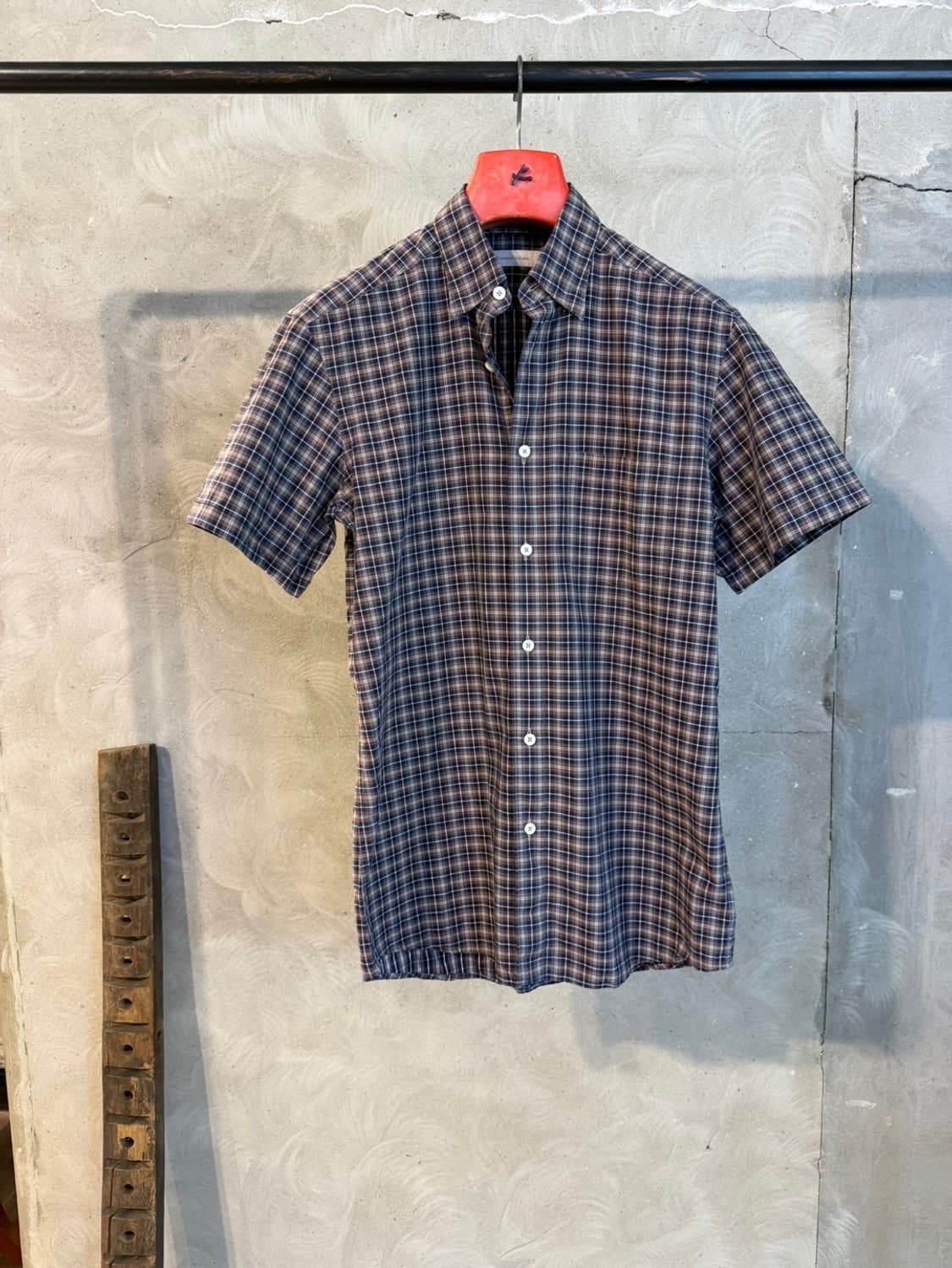 • 브루넬로 쿠치넬리 브라운 체크 코튼셔츠 XL