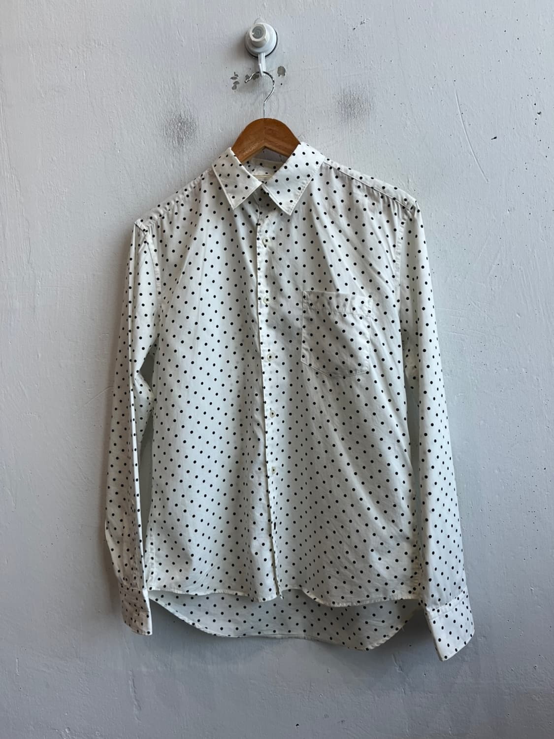 Comme Ca ism 도트 땡땡이 셔츠 - 일본 Comme Ca ism의 도트 셔츠 - 전반적 양호한 컨디션 어깨45 가슴단면54 총장68~72 팔길이63 260418