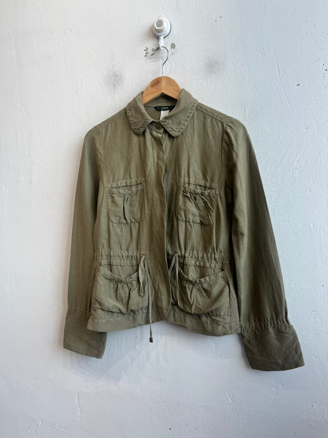 J CREW 제이크루 린넨 실크 자켓 우먼즈 - 소재 좋은 제이크루 린넨 실크 자켓 입니다. 전반적 양호한 컨디션이며 히든버튼으로 깔끔한 디자인 입니다. 어깨37 가슴단면45 총장59 팔길이62 260418