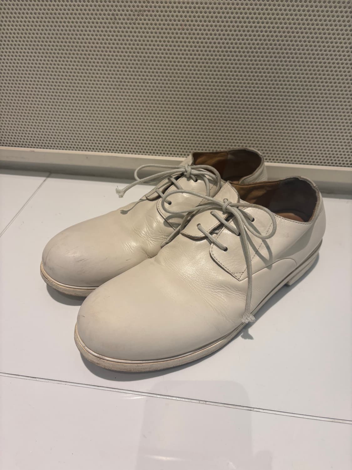 마르셀의 주카 더비입니다. 사이즈는 43이고 275~280정도 사이즈감입니다. 빈티지한 아이보리 색감과 주카 특유의 실루엣이 매력적입니다.