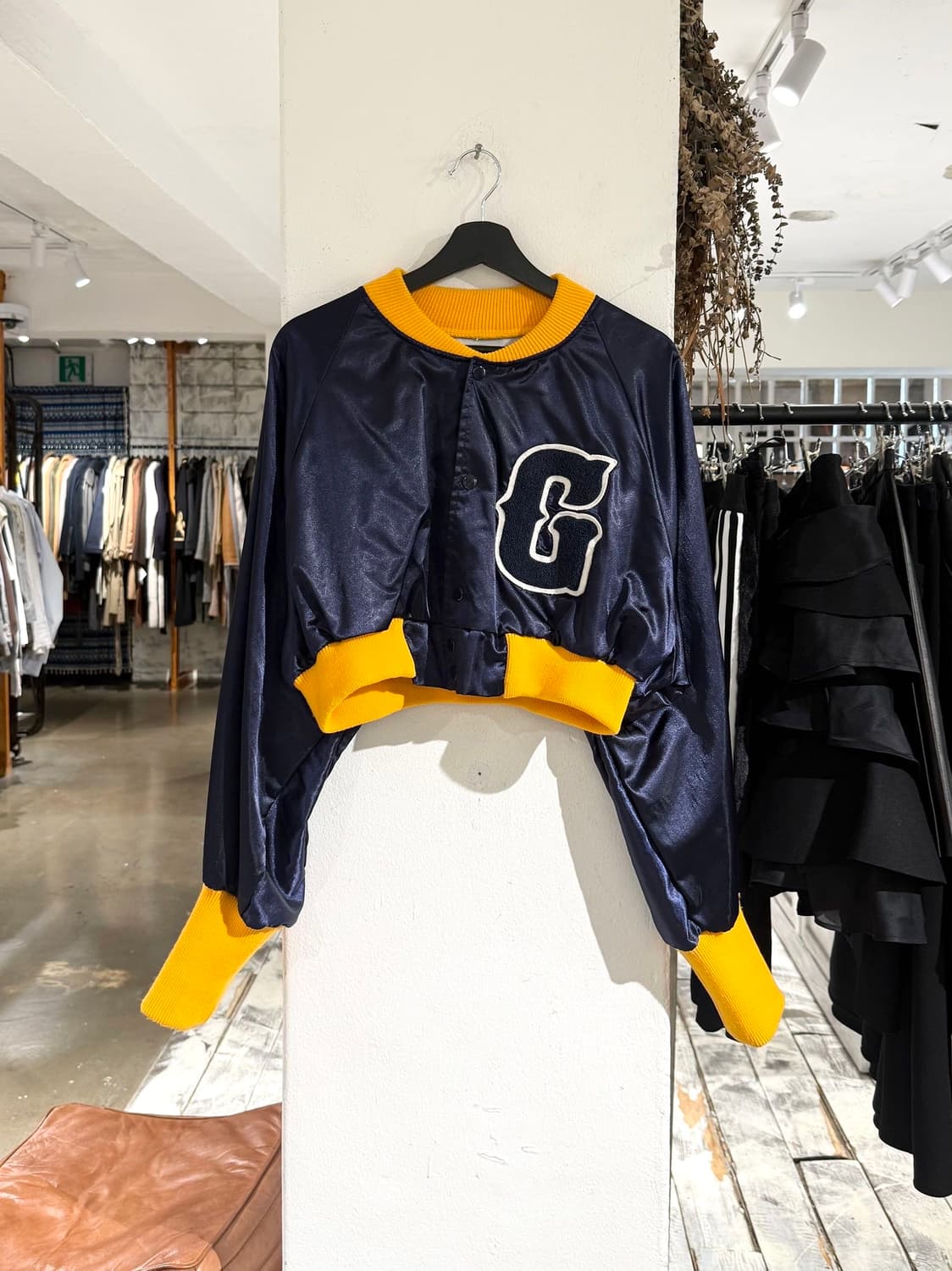나나서카 네이비 패치 크롭 봄버 자켓