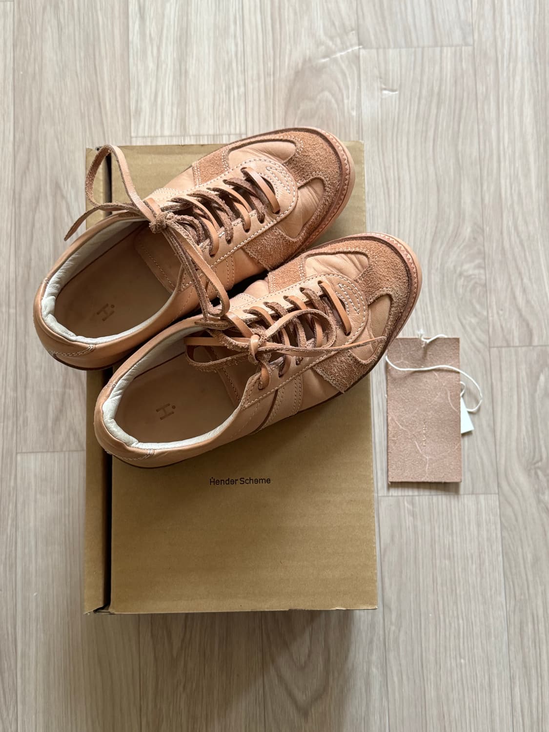 핸더스킴 독일군 35(225) 사이즈입니다. 자연스러운 사용감 있고, 사진으로 확인 부탁드려요^^ 박스와 구매할 때 받았던 가죽 조각 택? 함께 보내드려요. 구하기 힘든 신발이라.. 핸더스킴 중에서도 독일군이 가격대가 높았어요. 희소가치 충분합니다! 스타일 변화로 판매해요. 신으면 신을수록 예뻐질 가죽입니다. 교환, 환불 어렵습니다.