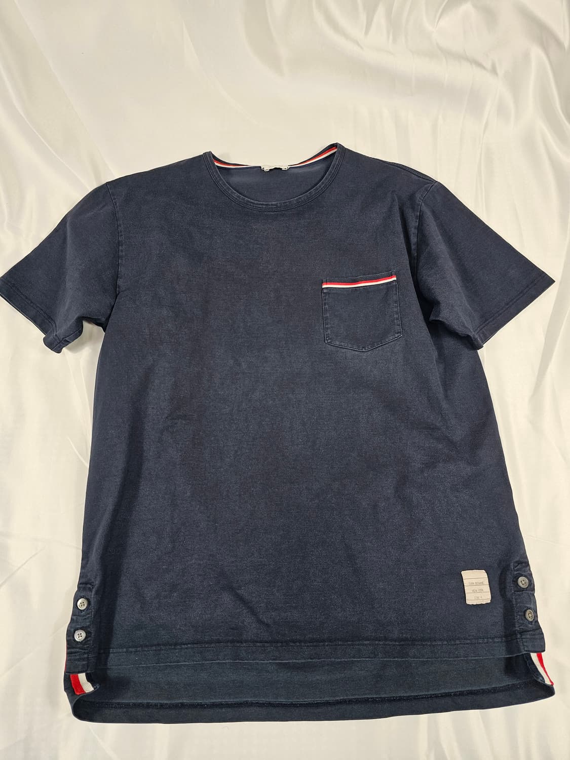 ltem: 톰브라운포켓반팔티 price: 15 condition:10/8 size:4 ※교신x 찔러보기x 반값택배x 하자네이비라비곤물빠짐외는이상없어요 세탁혹 드라이후고온스팀다리미소독처리한제품입니다 제주나섬지역은 추금4천원 사진싸이즈꼭참고 두개품목구매시택배비무료 택배비미포함이에요