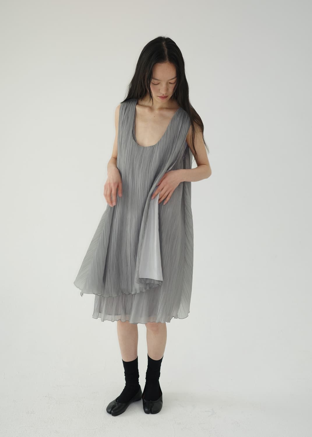 • Hwi 휘 플리츠 원피스 실버