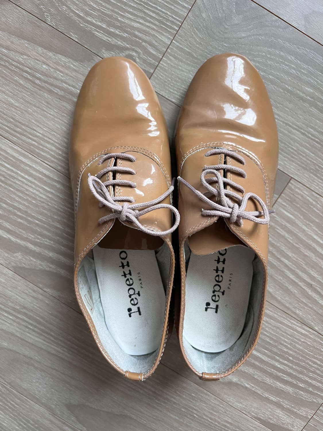 레페토 지지 플랫슈즈 베이지 36 입니다. 전체적으로 사용감 있습니다. 사진들 확인해주세요! 슈즈박스 없습니다 :)