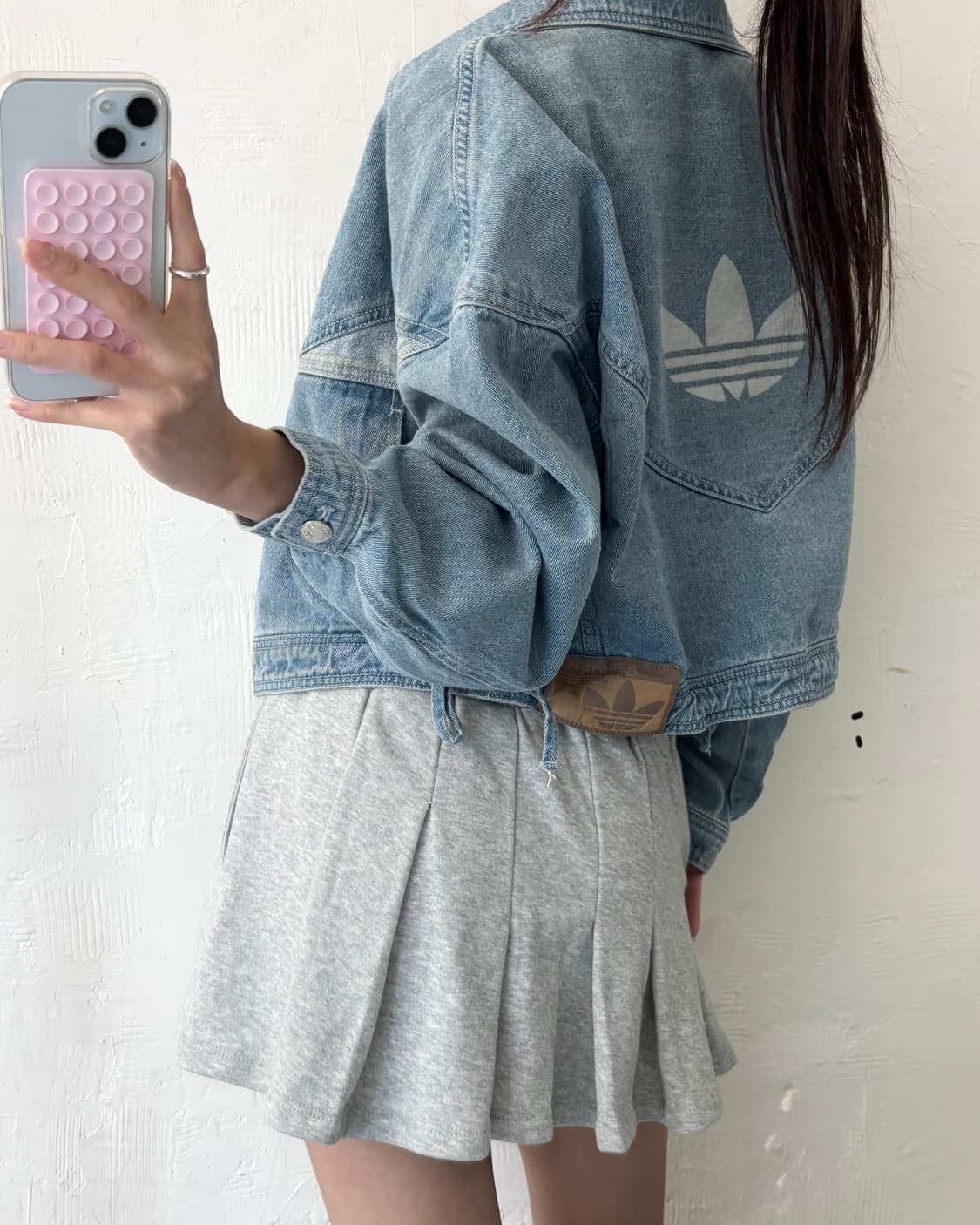 Adidas 아디다스 연청 크롭 데님자켓 price - 73,000 size S - 가슴단면 55 총장 47 model 160 / 44