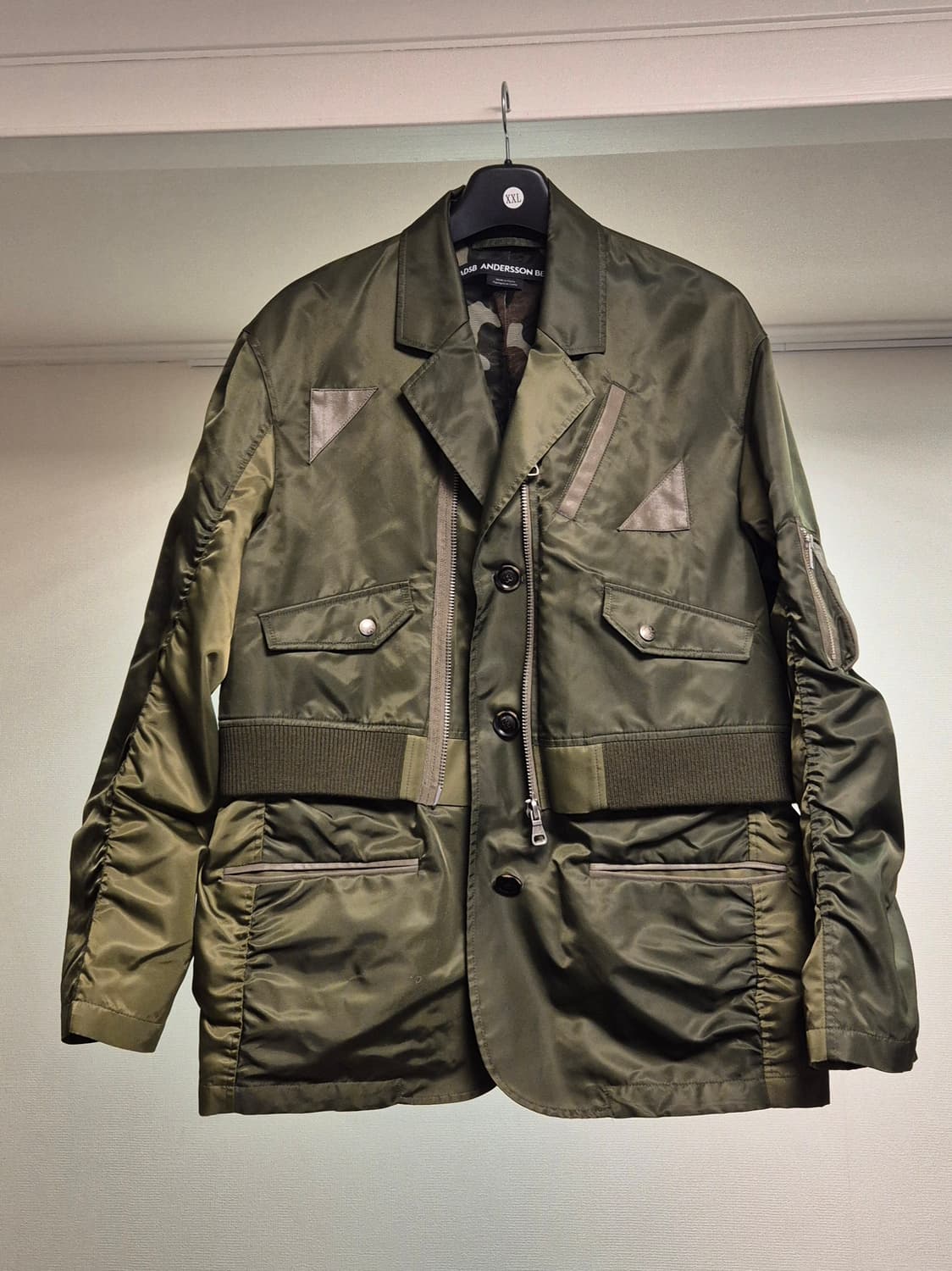 앤더슨벨의 플라이트 봄버 자켓입니다. 앤더슨 벨 특유의 밀리터리 기반의 하이브리드성 디자인이 재미있는 제품입니다. 가벼운 나일론으로 만들어져 착용감도 가볍습니다. 블레이저 자켓 기반의 과감한 재해석 아이디어가 흥미로워서 좋아했던 제품인데, 아우터가 지나치게 많아져서 고민 끝에 내놓습니다. 2,3번 정도 착용후 보관 되어있던 제품이라 상태상의 이상은 전혀 없는 훌륭한 컨디션이고요. 표기사이즈 XL 어깨 56 가슴 62 소매 66.5 총장 79 정도이고 1,2cm정도의 차이는 감안하셔야 합니다. 다른 자세한 정보는 사진들을 참고해 주시기 바랍니다. 신사동 가로수길 근방의 미성상가(신사중학교 건너편)앞에 정자가 하나있는데, 직거래는 그곳에서만 시간 협의 후 가능합니다. 택배의 경우엔 안전결제로 진행하고요, 주말이나 휴일이 아닌 경우 다음날 이른 오후 중 CU택배로 넣어드리면서 송장번호 보내드립니다. 별도 명시가 있지 않은 경우 해외나 제주지역 아닌 이상 배송비는 따로 없습니다. 문의사항 있으시면 편하게 연락 남겨주세요. 저는 업자가 아니고 개인매물을 거래하는 것이라 제 일과 생활이 있으니 늘 곧바로바로 대답해드리긴 어렵지만 최대한 빠른 시간 안에 답변 남겨드립니다.