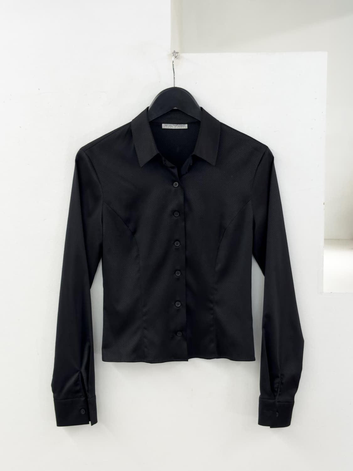 made in Italy 엠포리오 아르마니의 블랙 셔츠 입니다. 클래식한 디자인과 모던한 분위기가 매력적인 제품 입니다. 얇은 원단감으로 SS시즌 활용하기 좋은 아이템 입니다. 실측 단면 사이즈 (측정 방식에 따라 1-2cm 오차가 있을 수 있습니다) 표기size 40 어깨42cm 가슴43cm 총장55cm 소매61cm