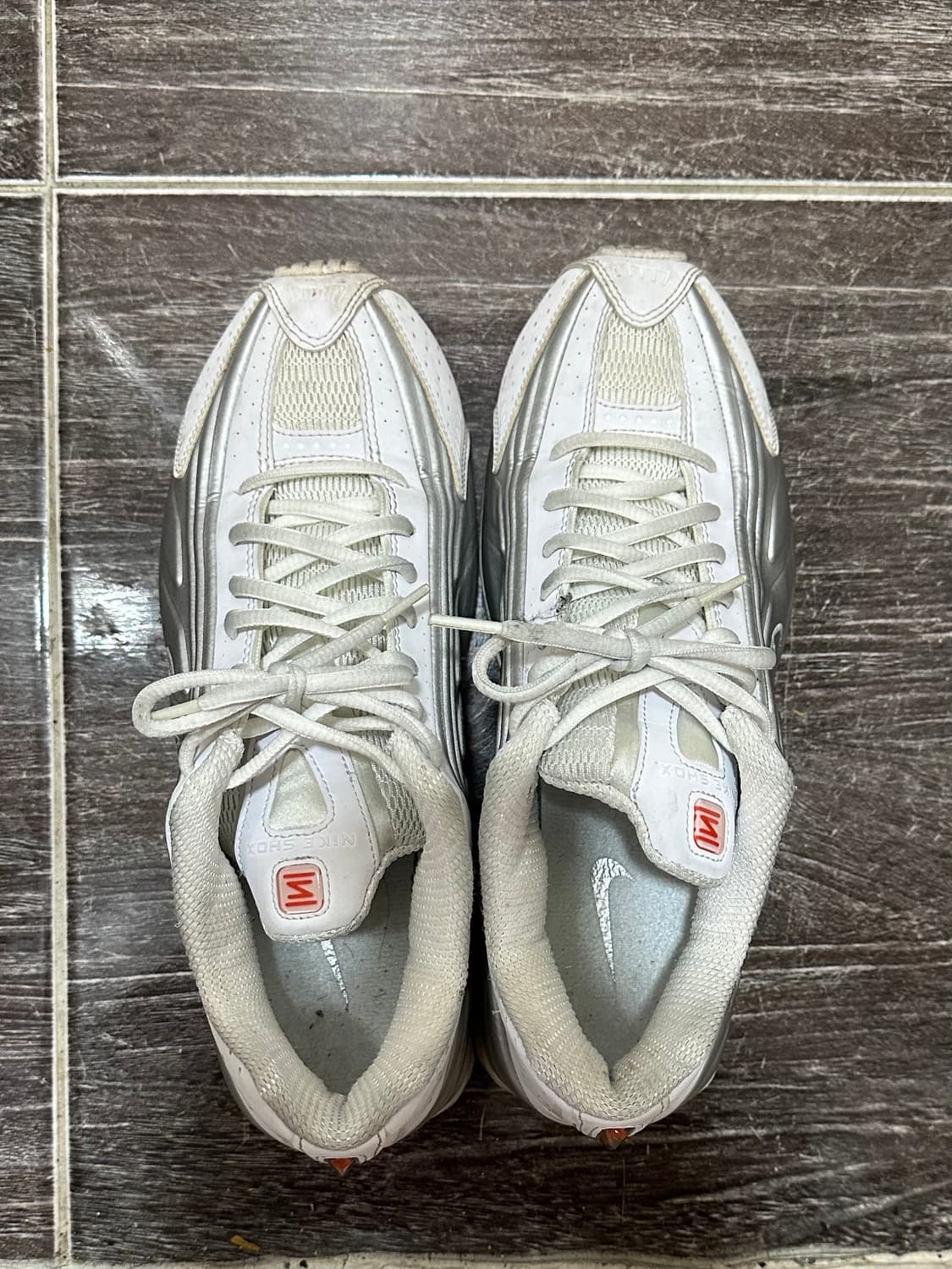 나이키 샥스 R4 화이트 메탈릭 실버 제품입니다 사이즈는 275W인데 제가 270신는데 딱 맞습니다