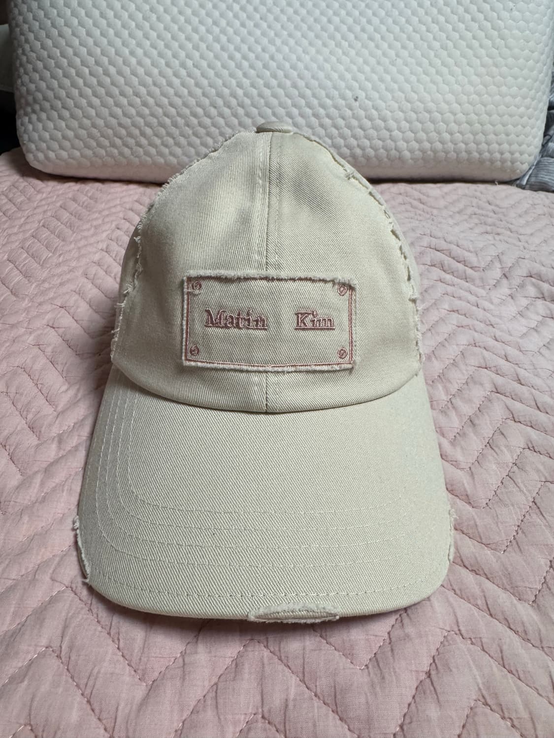 카톡 선물하기로 선물 받았던 제품이에요!! 저랑 모자핏이 너무 안어울리지만 너무 예뻐서 소장하다가 판매합니다ㅠㅠ 착용은 집에서만 여러번 해봤는데 이염은 좀 있습니다~! 단종 상품이라 구할 순 없어요~~ 사이즈 F *예민하신분은 피해주세요:) *환불x