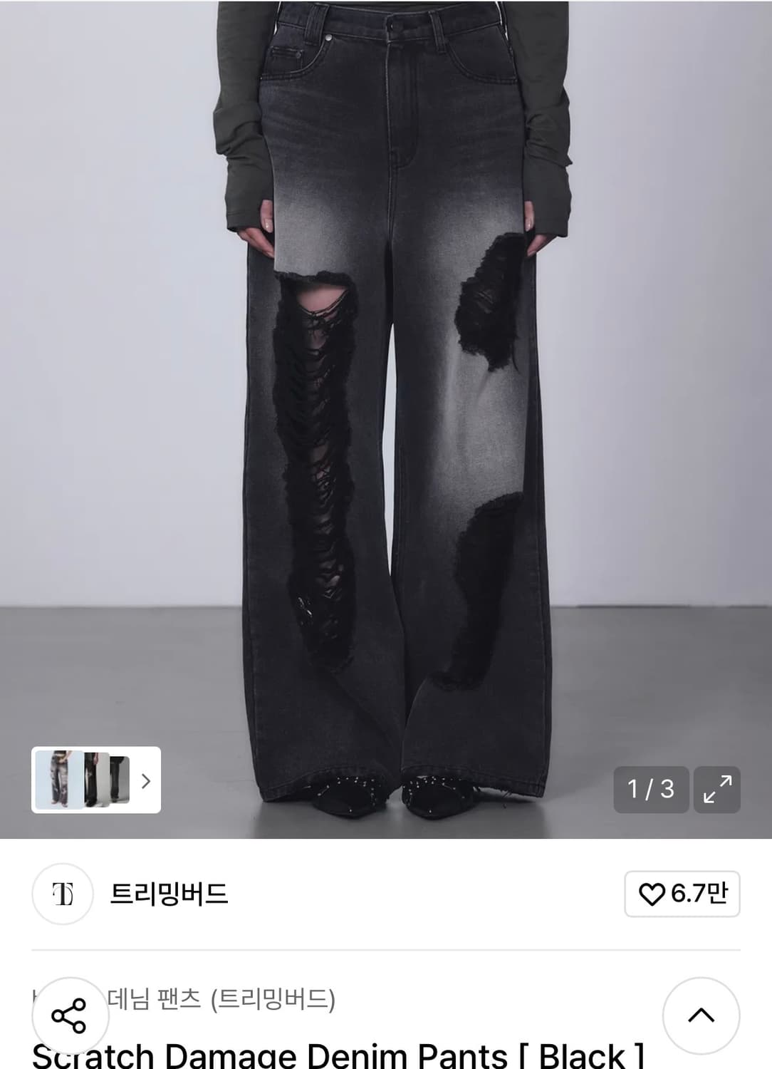 트리밍버드 스크레치 데미지 와이드 스웨트팬츠 멜란지그레이