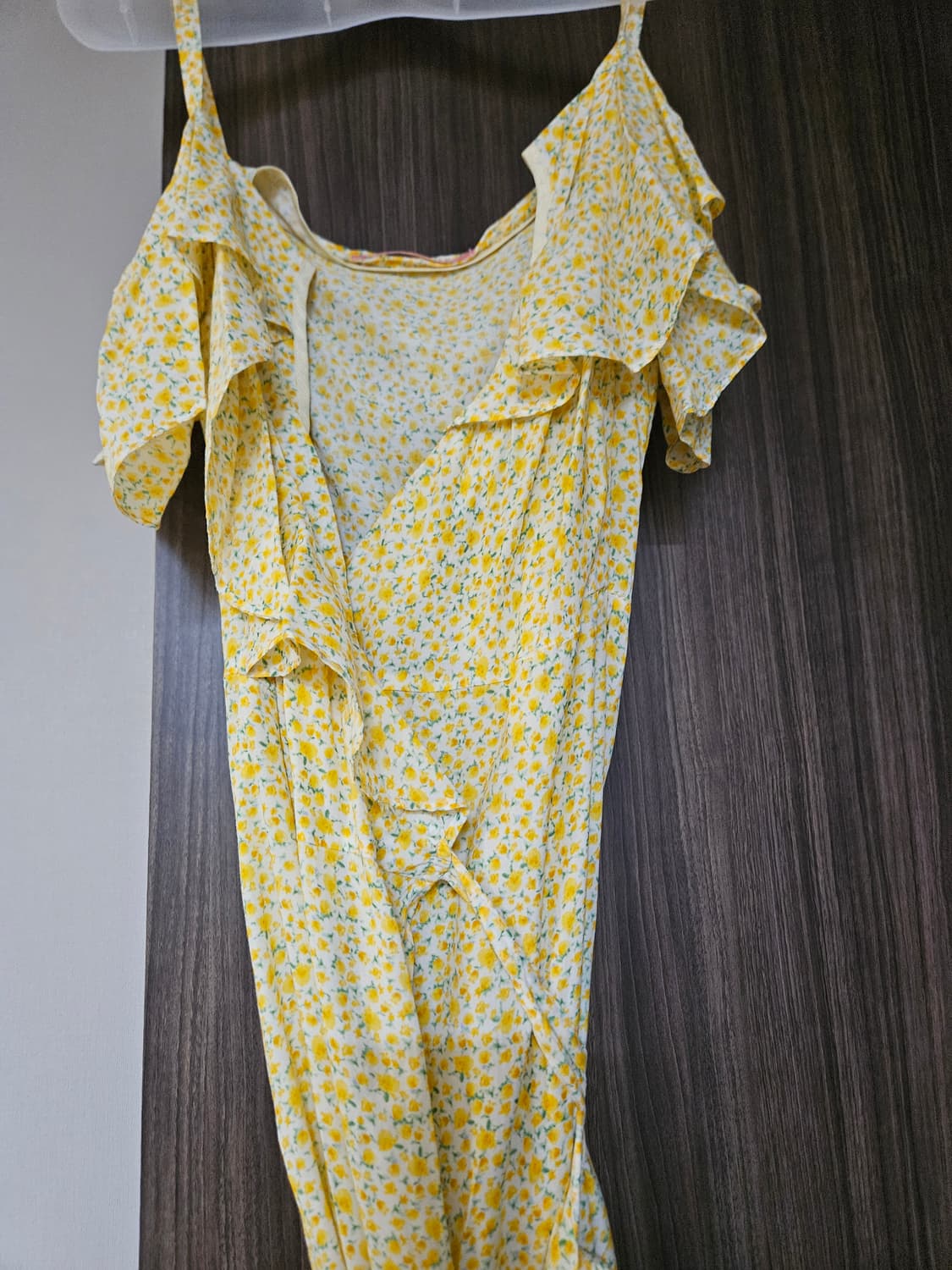 랭앤루 화사한 옐로우 컬러에 귀여운 플라워 패턴이 돋보이는 랩 원피스예요 여름에 시원하게 입기 좋은 소재와 디자인으로 러블리한 무드를 연출하기 좋아요 특별한 날이나 데이트룩으로 추천드려요