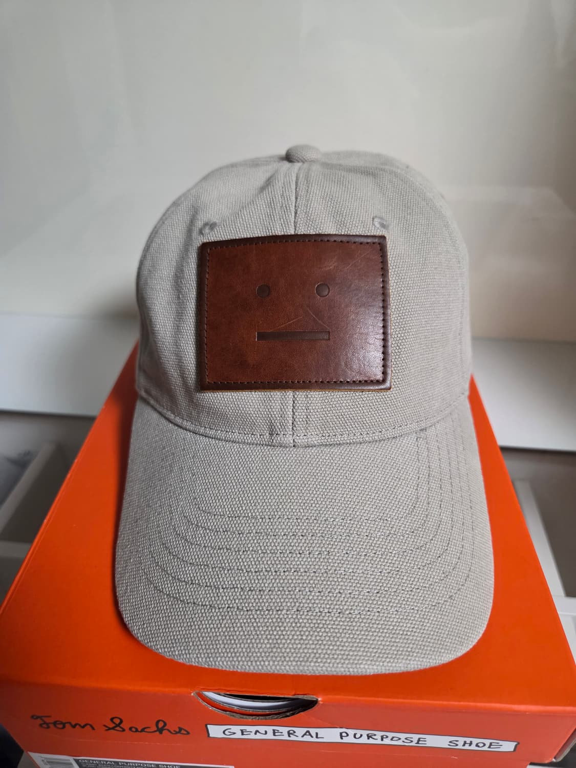 남녀공용 모자가 하도 많아서 쓰고 나간적이 있었나 싶네요 상태 거의 새상품급 색상은 연한 베이지 코튼 재질에 레더 느낌 이모지 패치 사이즈 큼지막한 편이고 뒤에 사이즈 조절도 가능 실측 챙 7.5 깊이 9
