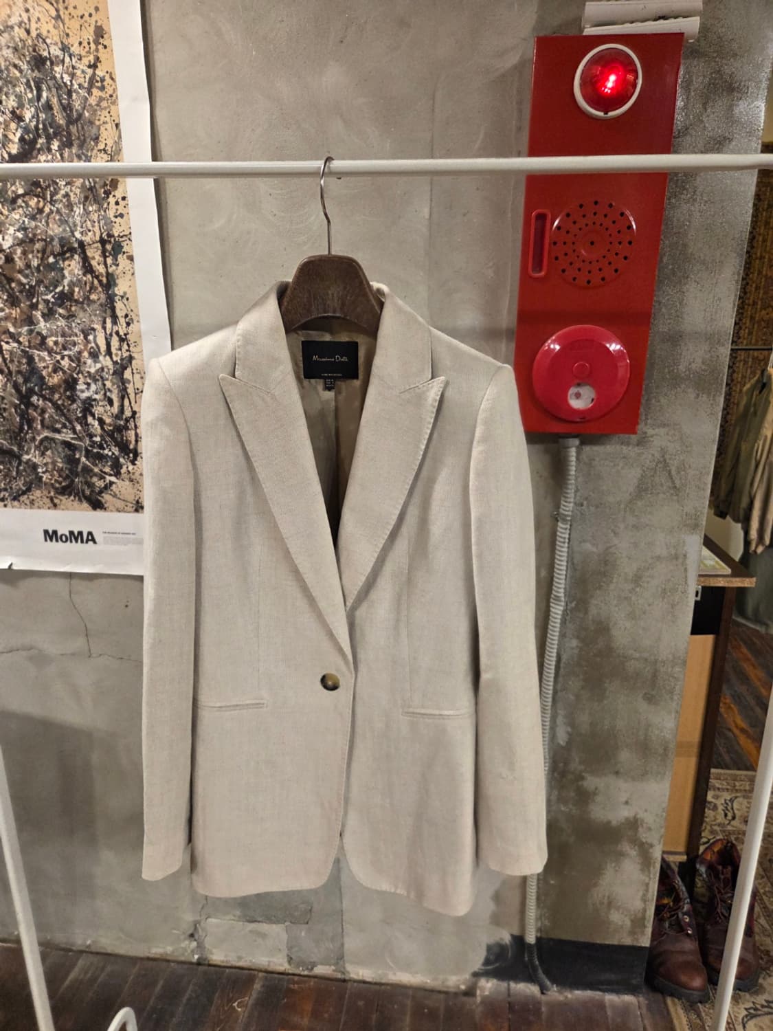 린넨패브릭이 지닌 풍성한 질감을 매니시한 태도로 풀어낸 마시모 듀티의 테일러드자켓입니다. 사이즈 여성 55 추천합니다. 감사합니다.