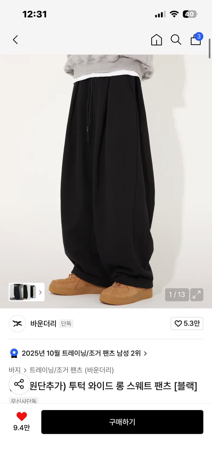 바운더리 스웻팬츠 (블랙)