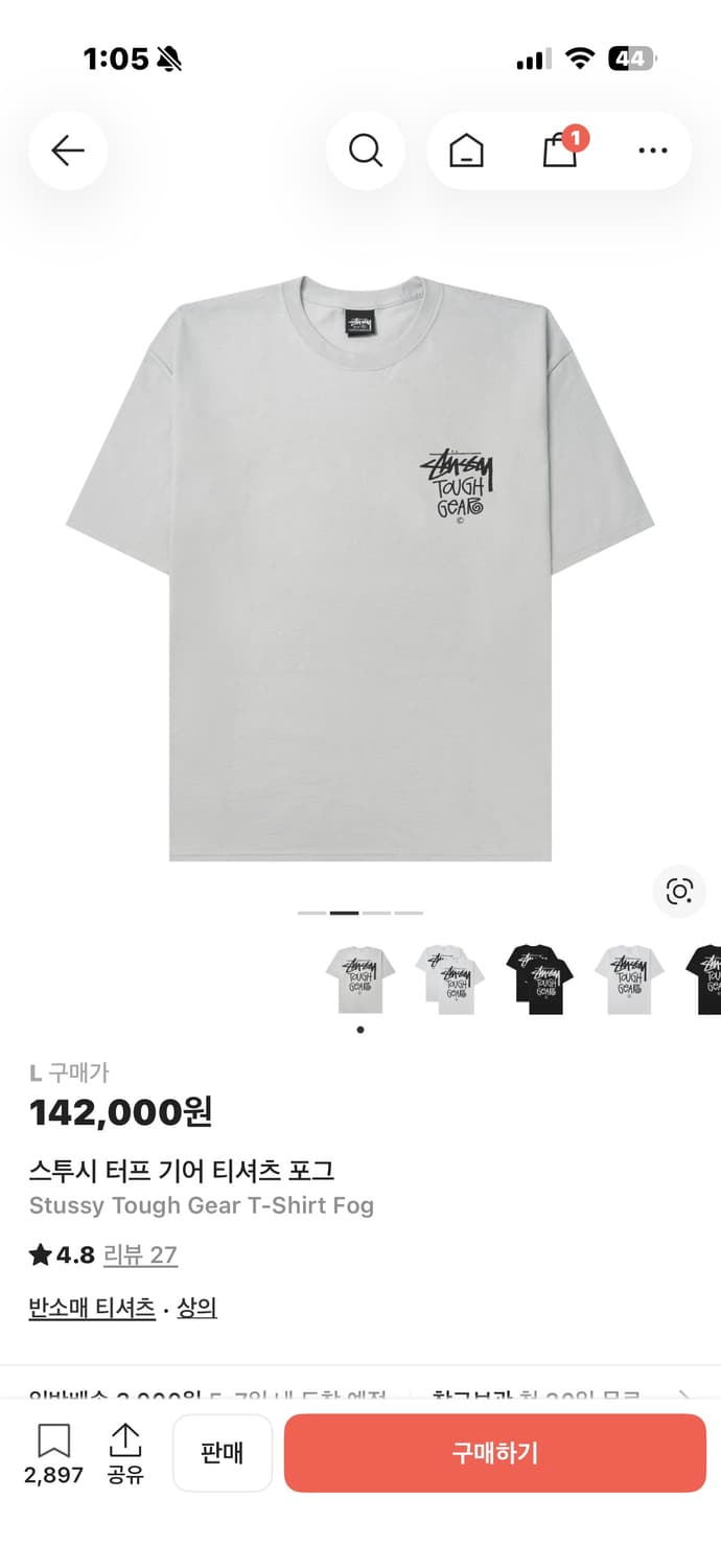 스투시 터프 기어 티셔츠 포그입니다. 약간의 사용감은 있지만 괜찮습니다! 크림에서 구매하였고, 네고 가능합니당!