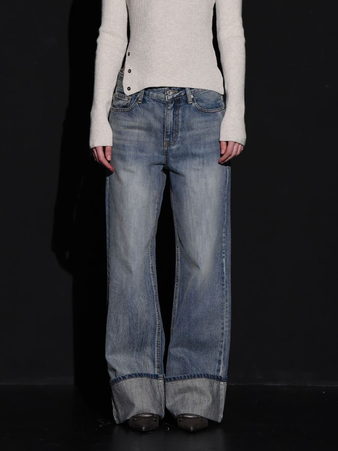 WIDE ROLLUP DENIM PANTS M사이즈 자주 입어서 사용감이 조금 있어 저렴하게 판매해요 드라이 한 번 하고 입으면 깨끗하게 입으실 수 있습니다 보헴서 최애 바지에요 사이즈 문의 안받아요