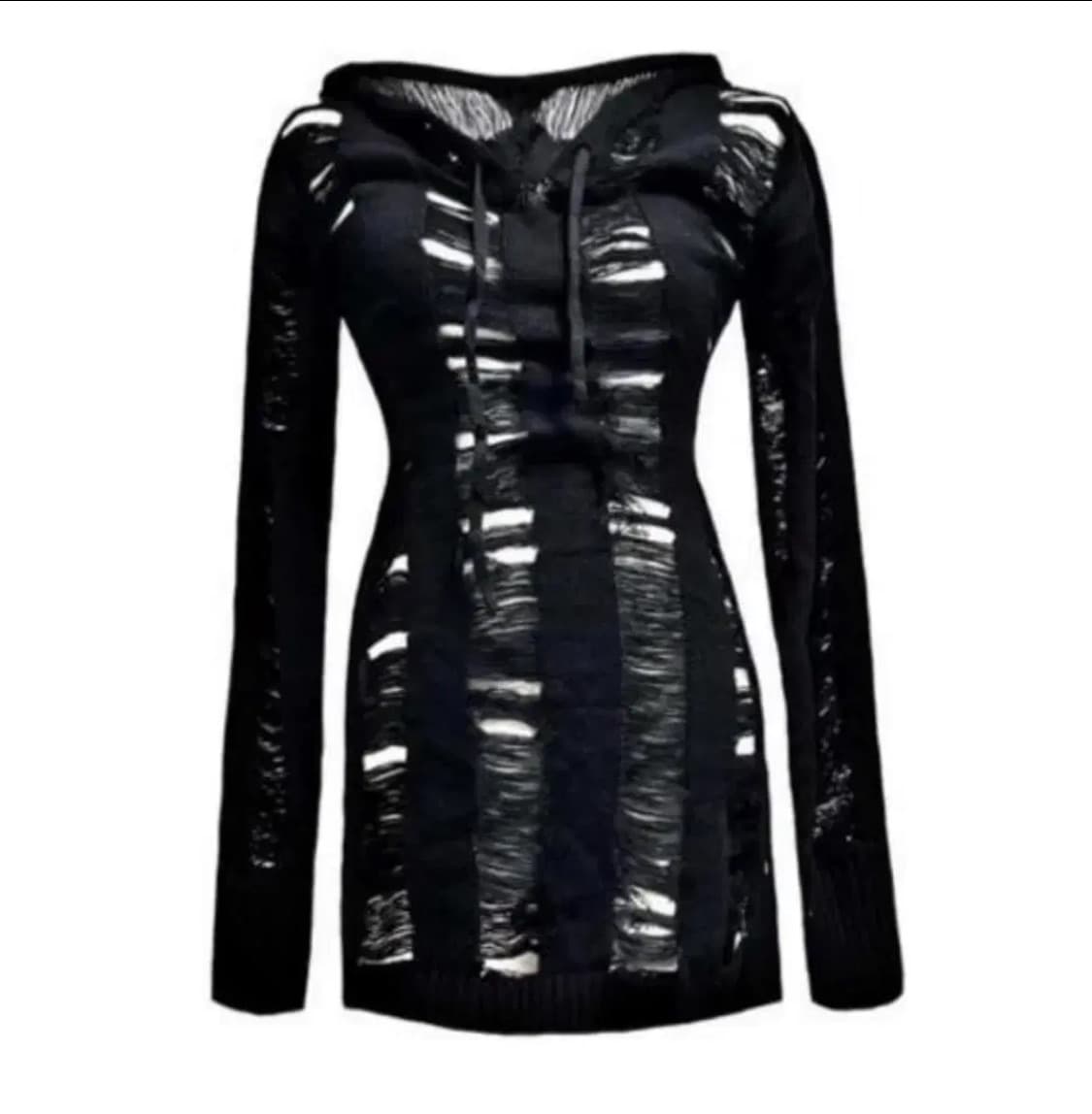비앤프롬 브레이크 데미지 후드 니트 원피스