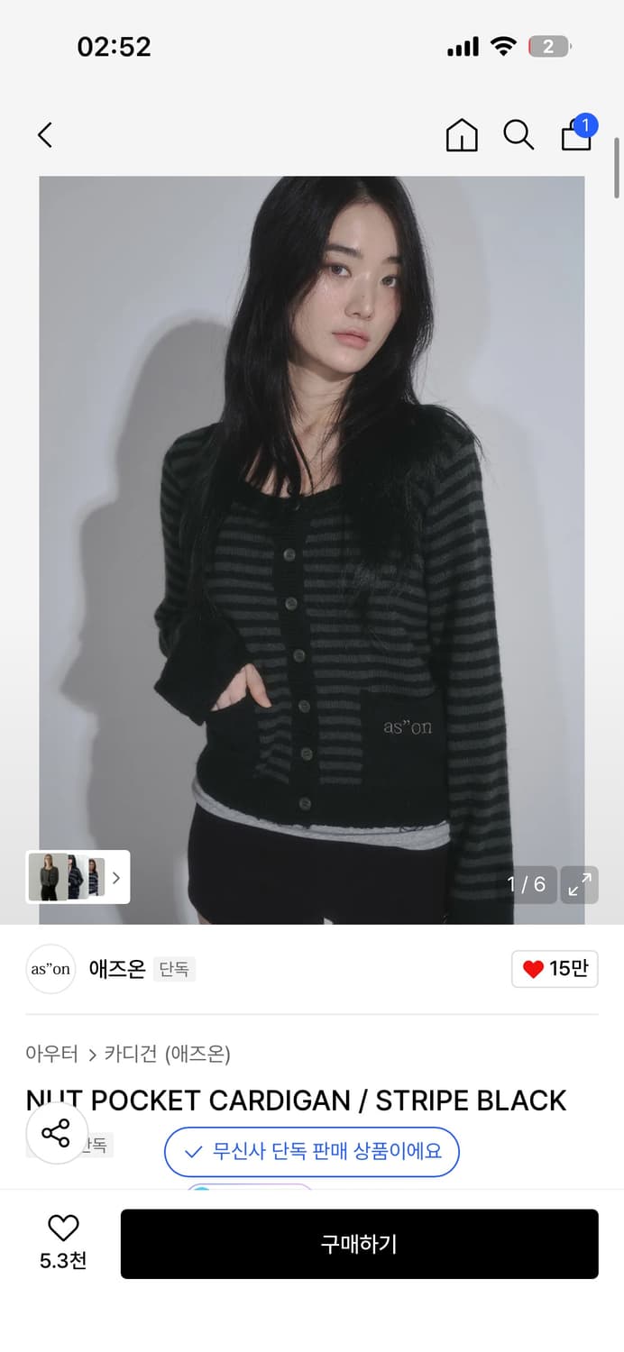 애즈온 NUT POCKET CARDIGAN/STRIPE BLACK 스타일 바껴서 팝니당.. 오염 하자 없어용 갠적으로 미디스커트+회색 나시 레이어드 해서 입는게 젤 귀여워용..😽 gs 반택만 가능합니당 정가 72,000원