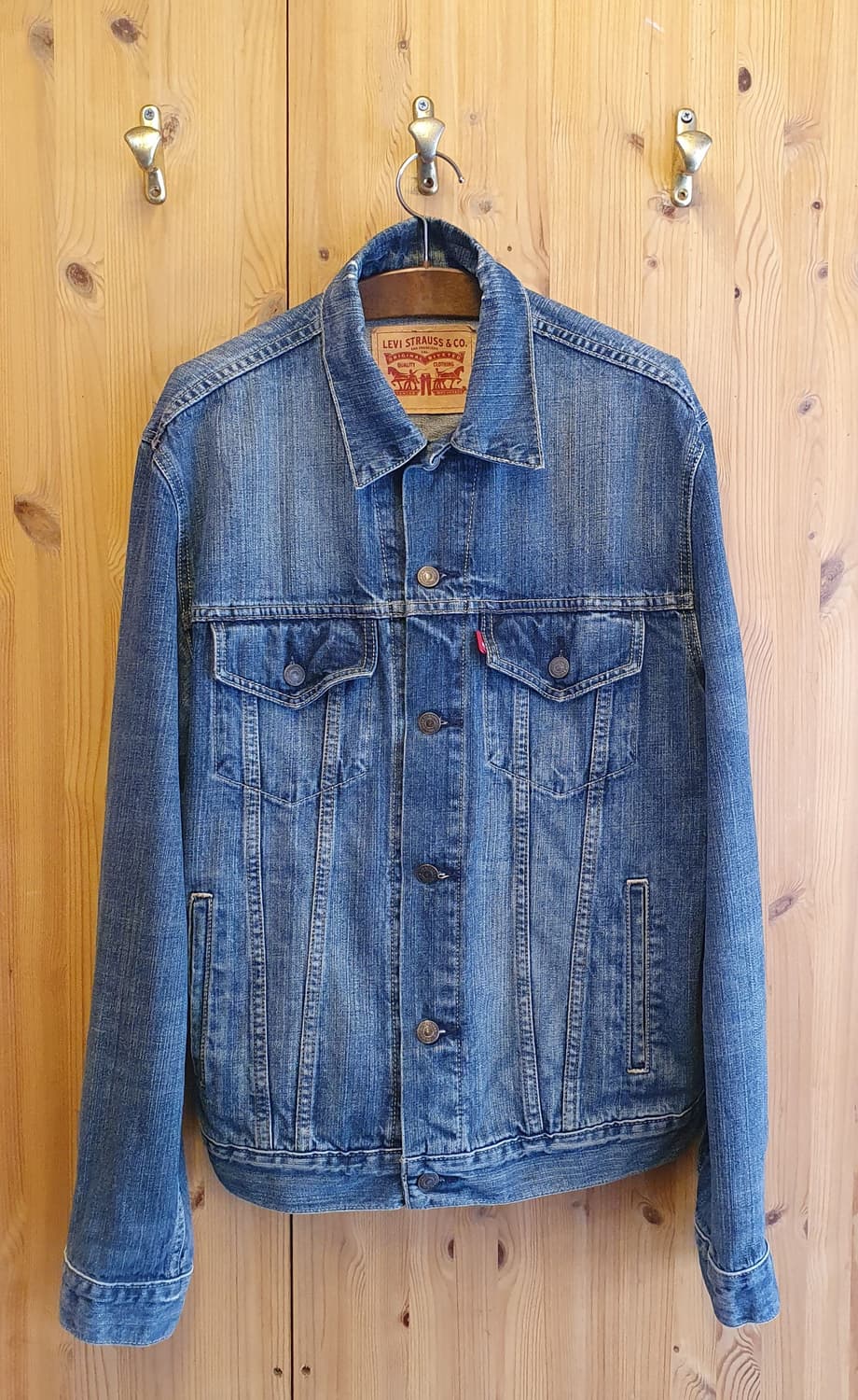 리바이스 트러커 데님자켓 상태 깨끗합니다 남성95 . 소재 면 . 색상 데님 가슴반품50 . 총기장68