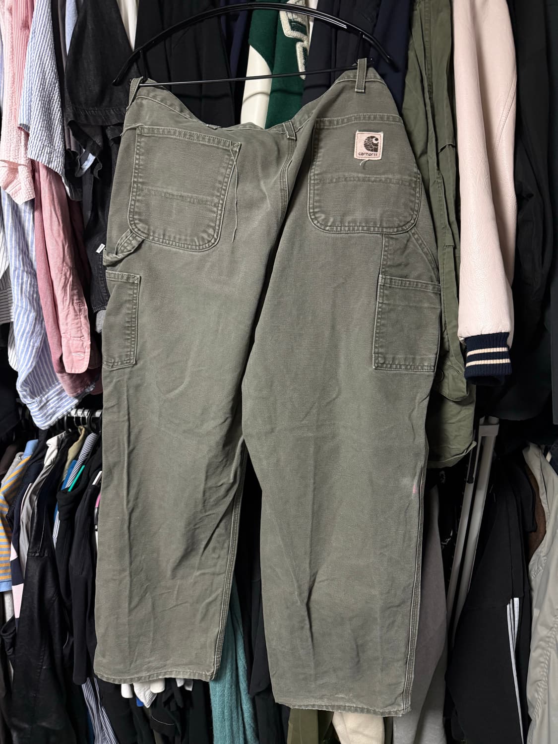 칼하트 카고 팬츠 카키색이에요 편안한 착용감과 넉넉한 수납공간이 특징이에요 튼튼한 소재로 오래 입기 좋아요 활동적인 코디에 매치하기 좋은 아이템이에요 여기저기 데미지는 있지만 전반적으로 상태 좋습니다