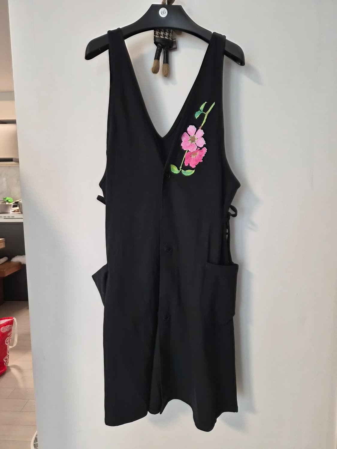 깔끔한 블랙 컬러에 화사한 핑크색 꽃 자수가 포인트인 브이넥 조끼 베스트입니다. 단정하면서도 여성스러운 분위기라 데일리룩은 물론, 격식 있는 자리에도 입기 좋아요. ​✨ 주요 특징 ​사이즈: 택 기재 66 사이즈 (정사이즈 추천) ​디자인: 깊은 V넥 라인이라 얼굴이 갸름해 보이고, 안에 셔츠나 폴라티 등 어떤 상의와 레이어드해도 잘 어울립니다. ​포인트: 왼쪽 가슴 부분의 꽃 자수가 아주 촘촘하고 예쁘게 들어가 있어 밋밋하지 않아요. ​디테일: * 양옆에 **포켓(주머니)**이 있어 실용적입니다. ​옆구리 쪽에 조절 가능한 끈이 있어 체형에 맞게 핏을 잡을 수 있습니다. 코디 팁! ​지금 같은 간절기에는 흰색 셔츠나 블라우스랑 입으면 가장 예뻐요. ​날씨가 더 추워지면 얇은 목폴라와 매치해도 세련된 느낌을 줍니다.